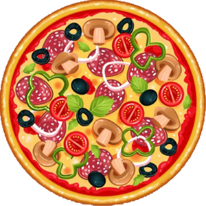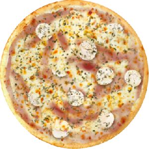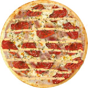 Azeitona, Calabresa, Cebola, Frango, Milho Verde, Molho ao sugo, Mussarela, Orégano, Pimentão, Presunto, Tomate seco