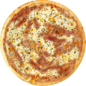 Azeitona, Bacon, Cebola, Molho ao sugo, Mussarela, Orégano, Palmito, Pimentão, Presunto, Requeijão