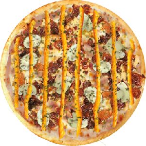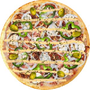 Azeitona preta, Cebola, Frango, Molho ao sugo, Mussarela, Orégano, Ovo cozido, Pimentão, Presunto, Tomate seco