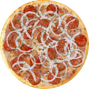 Calabresa, Molho ao sugo, Muita cebola, Mussarela, Orégano